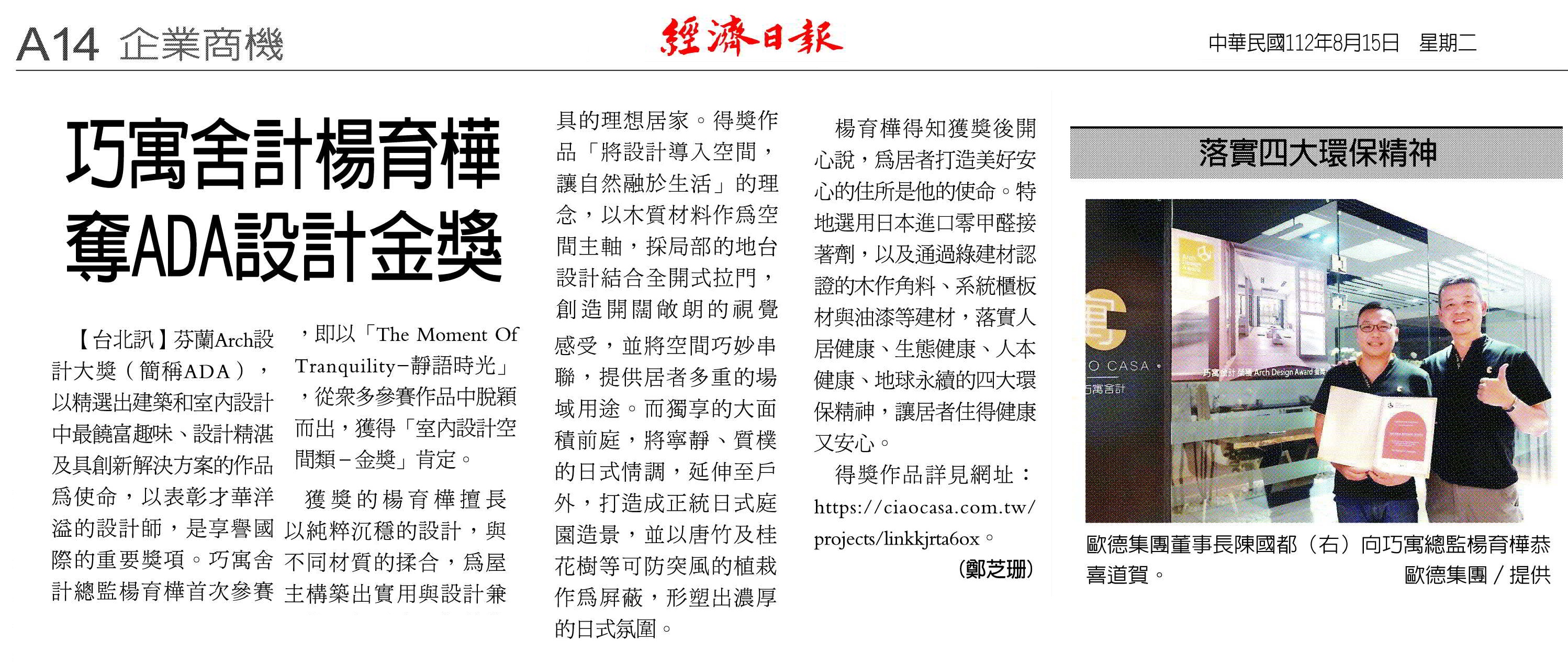 【媒體報導】巧寓舍計再顯國際競爭實力 勇奪美國 IDA 國際設計大獎