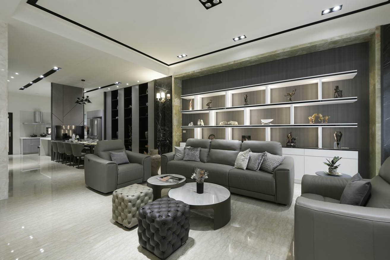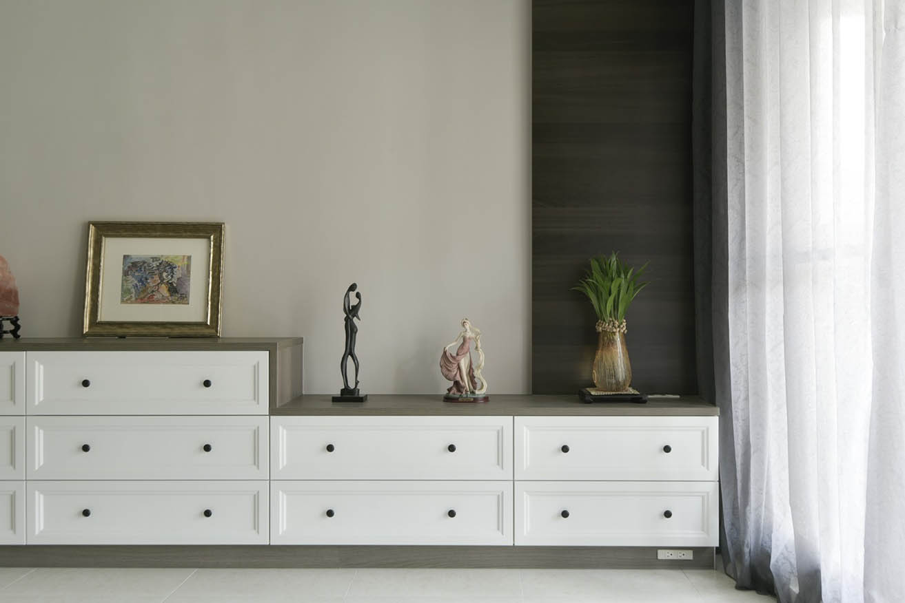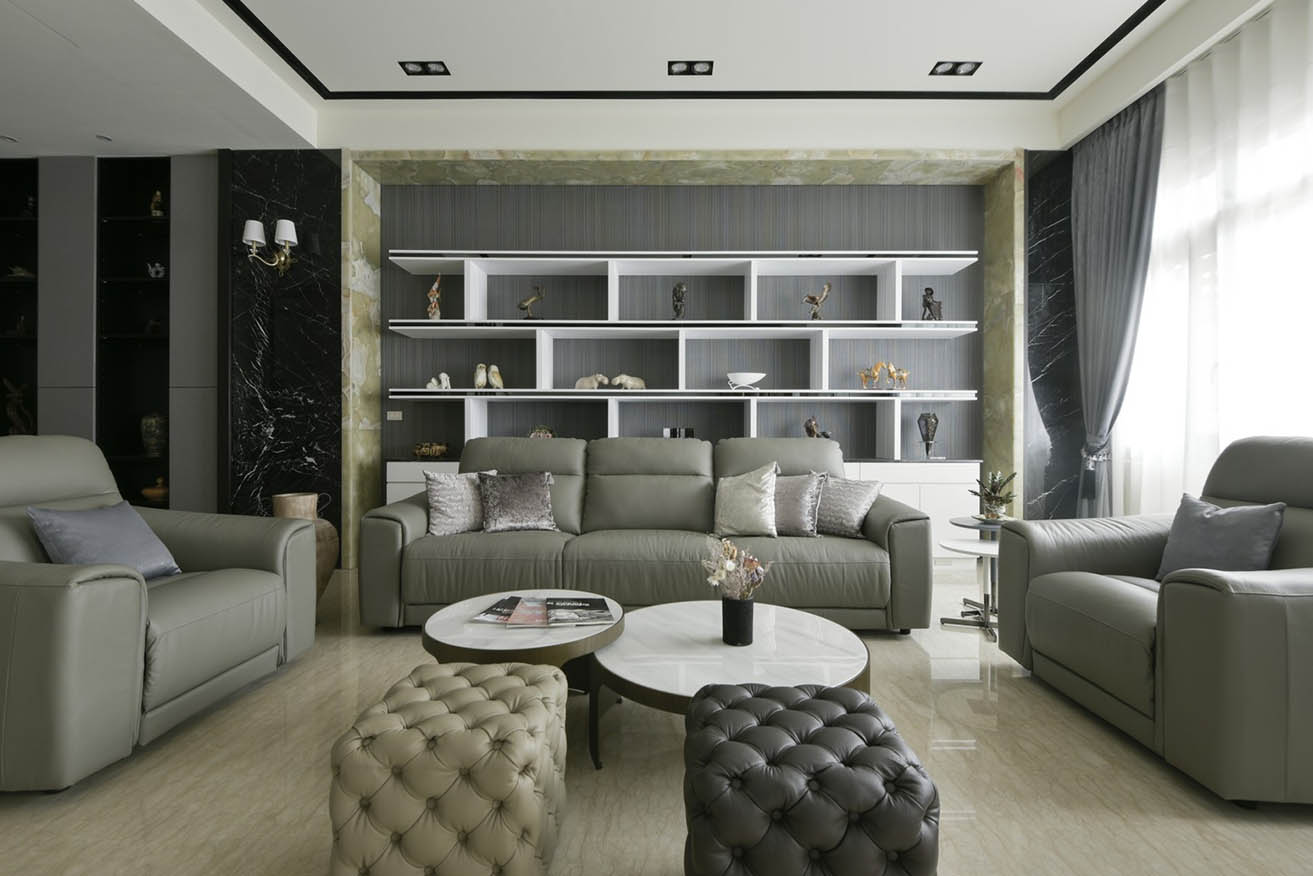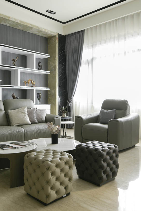 屋主喜歡簡約的生活態度,由於與長輩同住,空間裡需考量三代同堂的風格變化與需求,歐德設計師透過現代風格整合整體視覺,以開放的格局規劃,賦予空間層次變化,但不過分切割的手法來展現家屋特質;女屋主是畫家、女兒則是專攻產品設計的領域,品味非凡的她們擁有大量的美學收藏,藉由不規則線條與開放的層板方式,讓藝術氣息流淌空間裡,享受講究的生活品味!