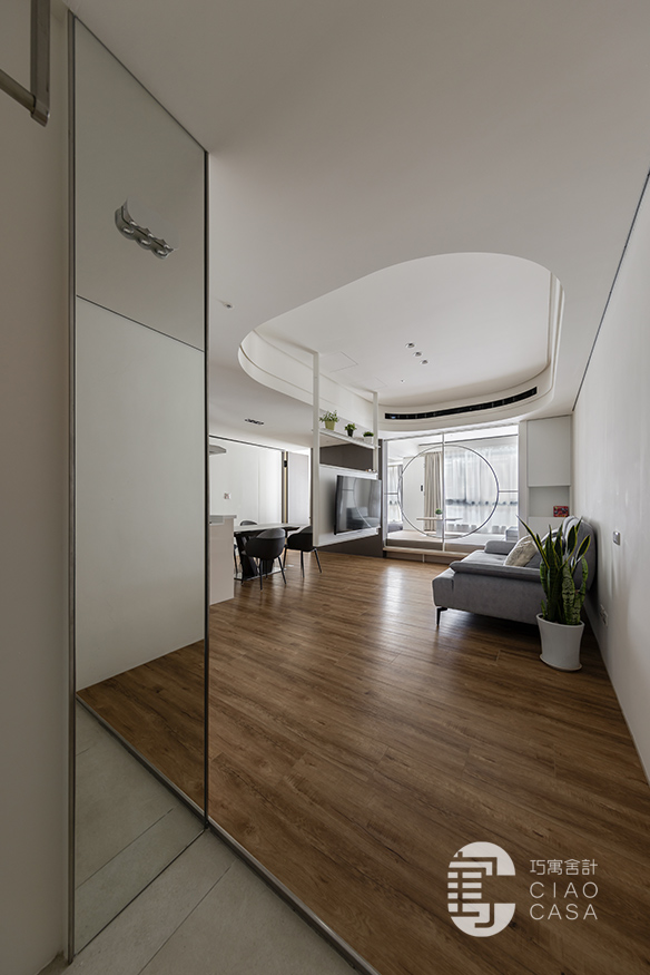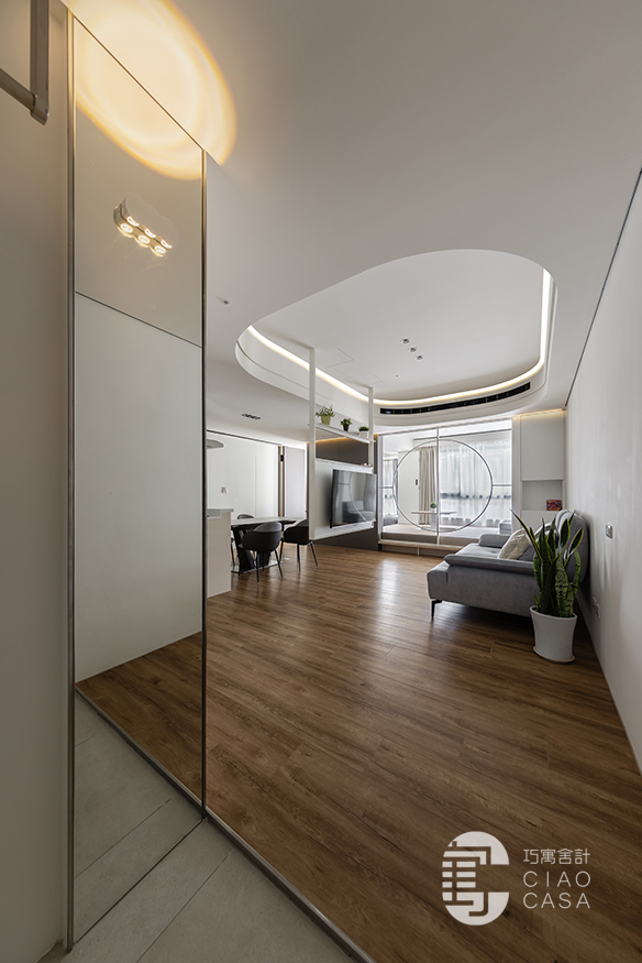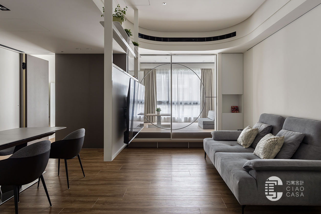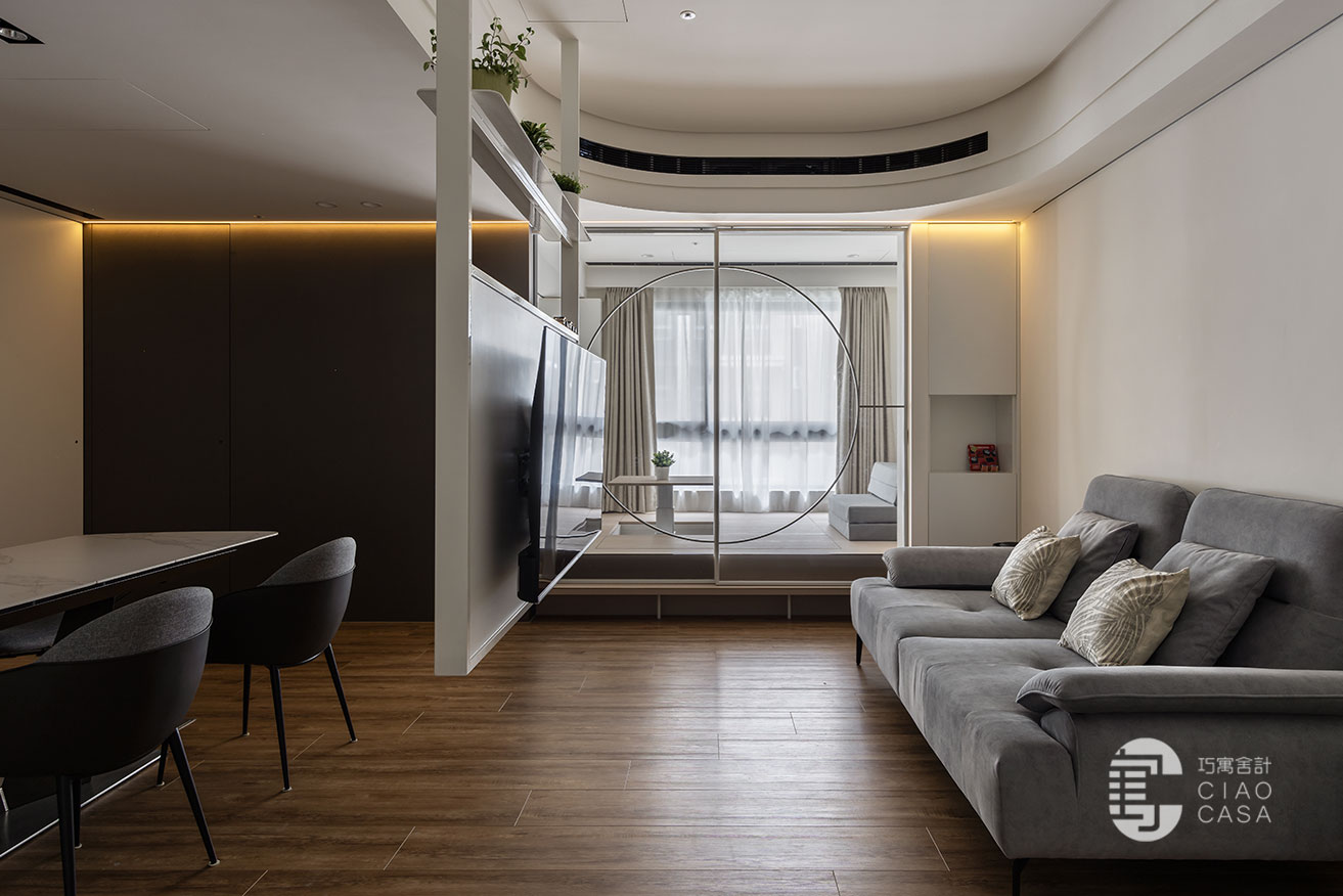 數學家阿基米德曾言:「給我一個支點,我將舉起整個地球。」對設計師來說,「家」即是柔和卻有力的溫暖支點,足以將生活托舉、將情感凝聚。承載著圓滿與團聚的美好寓意,全室環繞著「圓」而生,開闊似無邊的公領域,以流暢自如的環形動線,解放了傳統區域機能的界限,將客廳、餐廚、休閒區及客房巧妙融合一體,也觸動了家人間一圈圈的情感漣漪。而簡約無飾的設計語言,使空間自由地展現豐富的生活紋理,帶來源自心底的溫實感受。