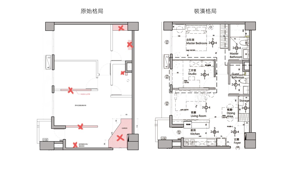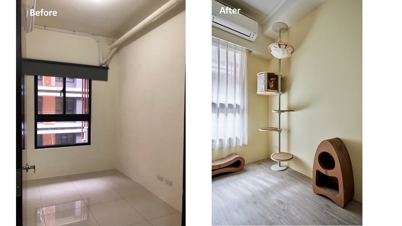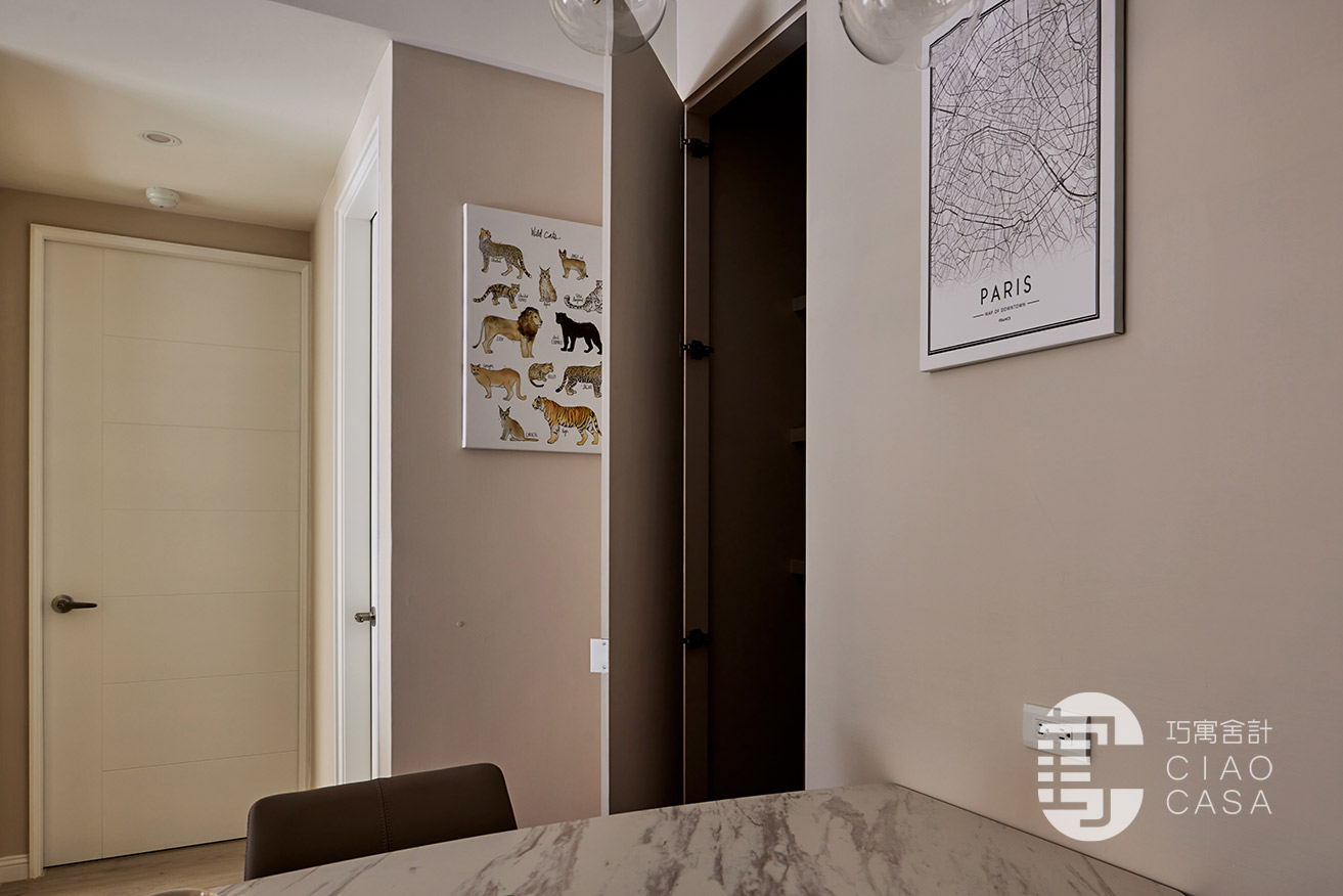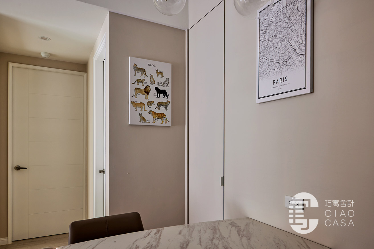 屋主對於整體的一致性、和諧感與整潔有著高度的要求,並希望能隔出一間儲藏室簡化收納空間,設計上如何重現法式浪漫、融合貓咪的活動空間,並保留未來小孩房的擴充彈性,是這個空間的核心關鍵。