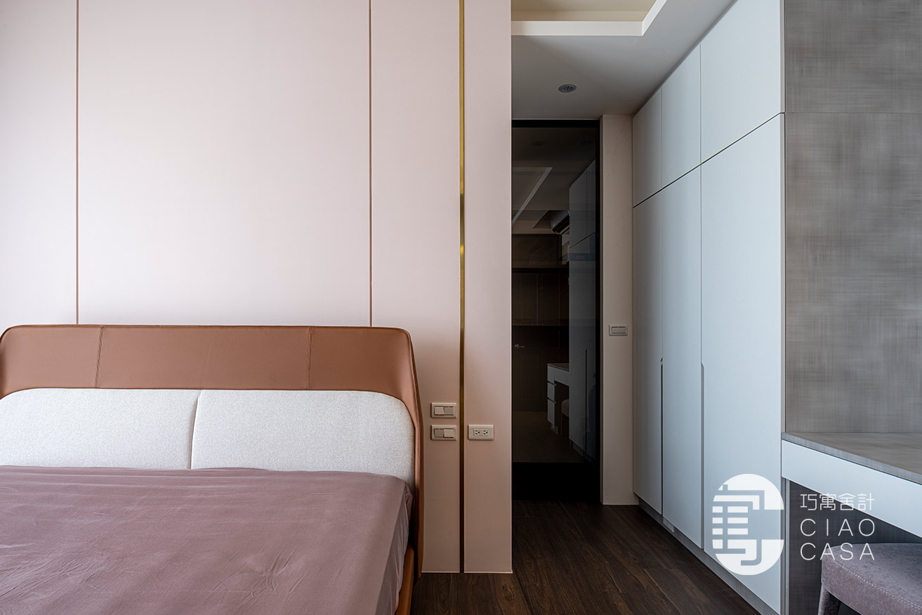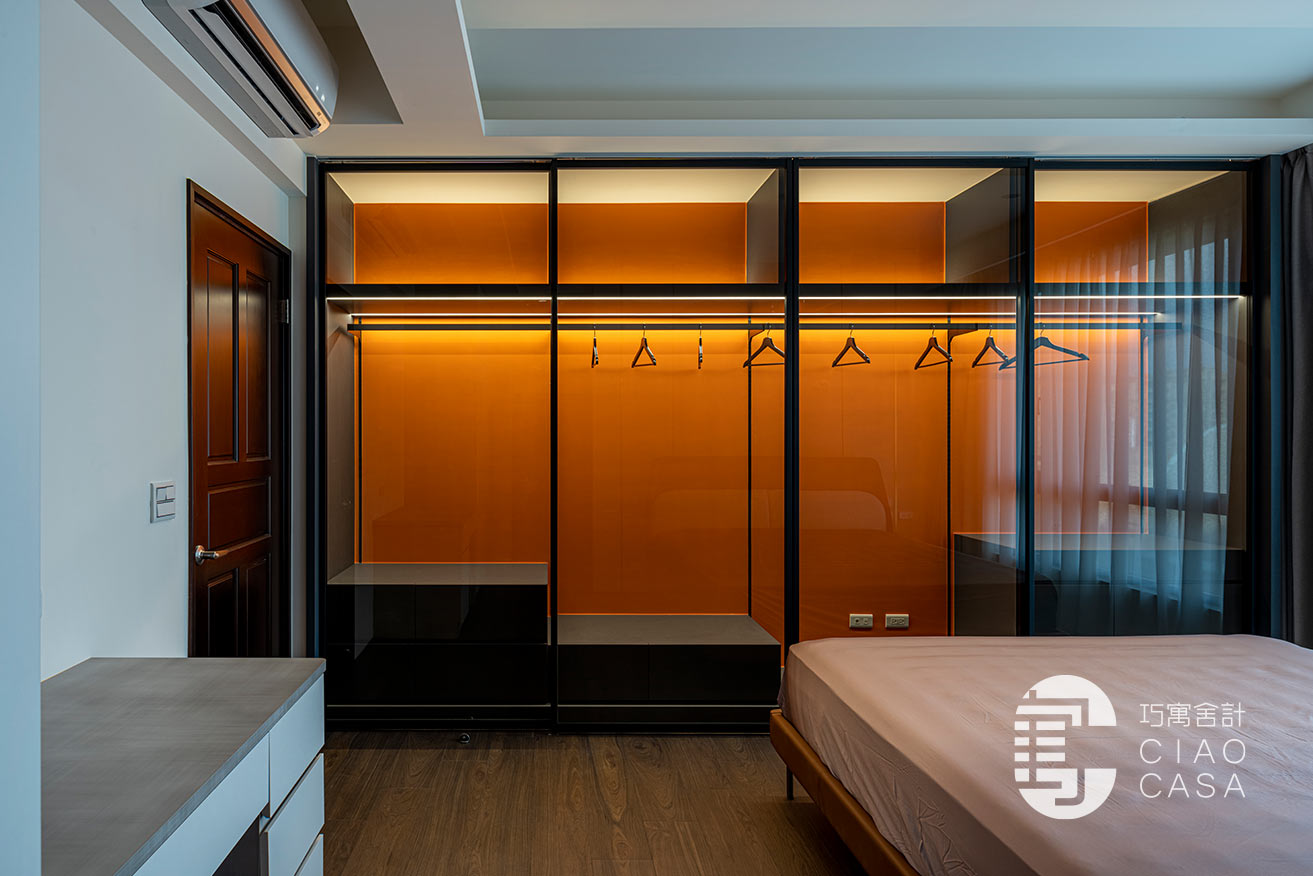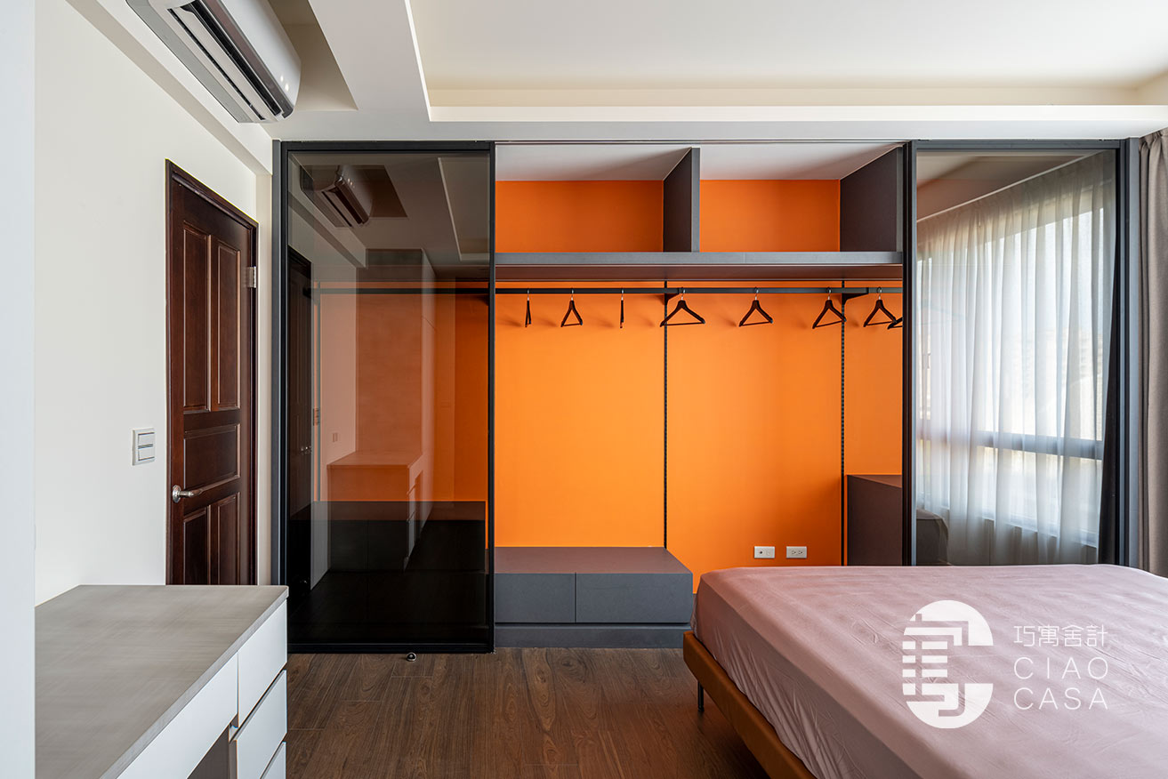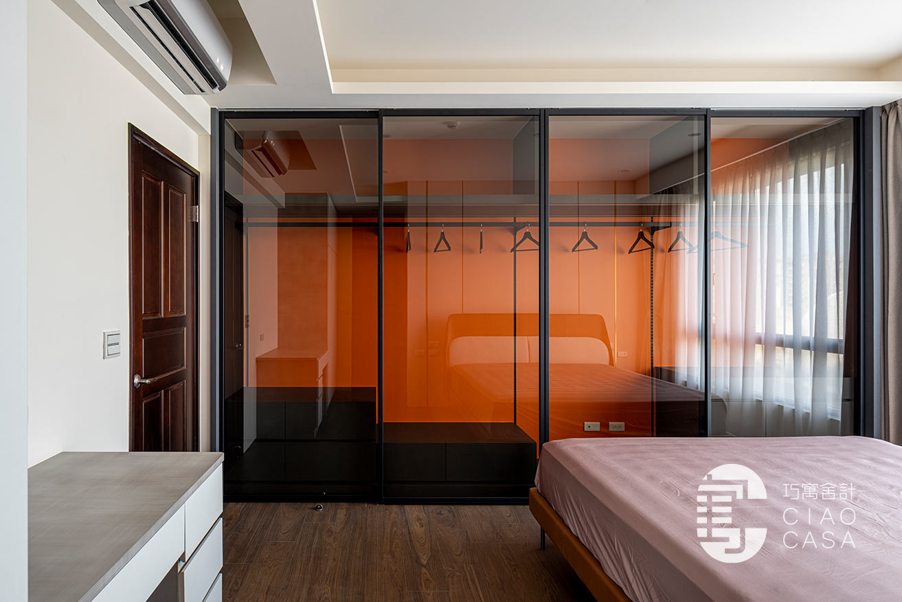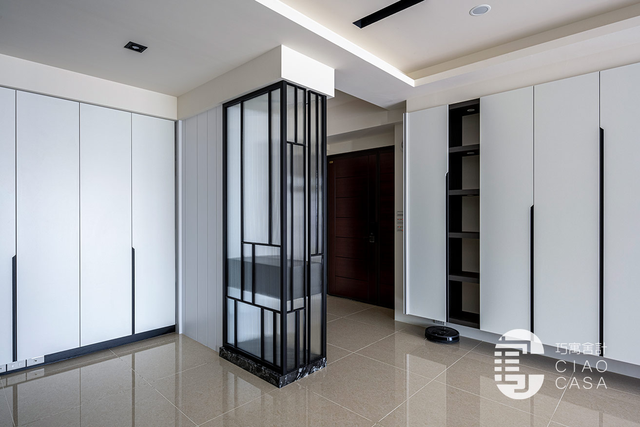 本案位於桃園市區的新屋裝潢,由何康玄設計師著手規劃,融合業主需求,公共空間維持全開放格局,以黑、白作為主色,讓空間保持純粹、俐落,再利用綠色、紅色的軟裝點綴,深淺分明帶出良好的層次感,大理石電視牆更創造深度的空間視覺,成為了公共空間的主角。