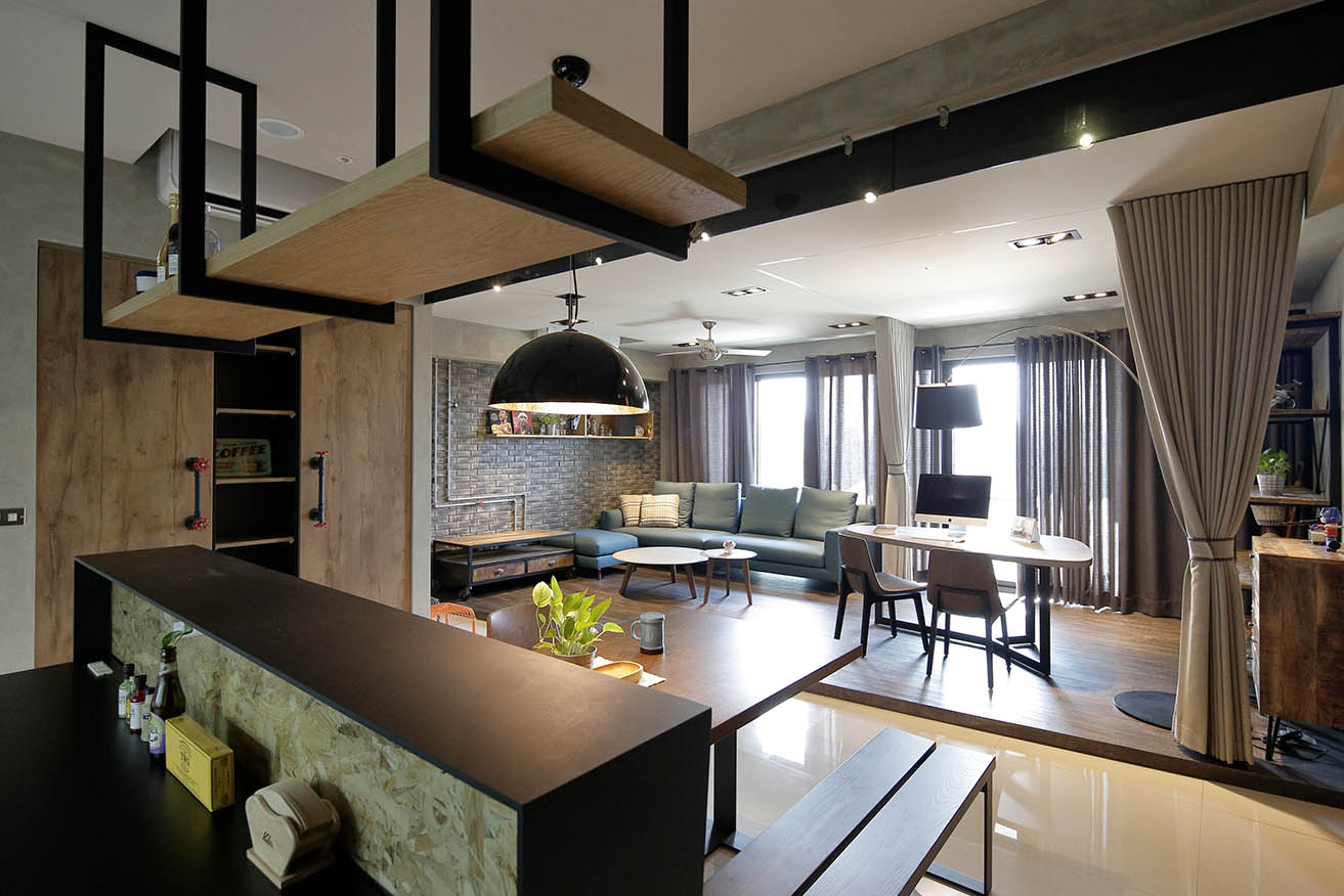 面對理想的工業咖啡之家絕不妥協,室內設計師的精心規劃,選擇咖啡紅豆杉板材、鐵件和文化石等工業元素,並以樂土礦物塗料代替水泥打造風格;以系統傢俱統整收納,堆疊具有迷人咖啡廳氣息的工業住宅。