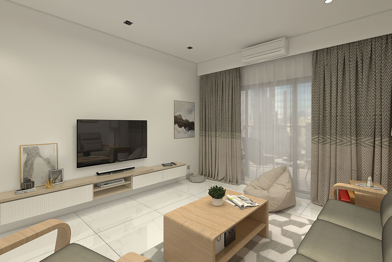 系統收納櫃、烤漆玻璃、進口窗簾、實木家具、木作天花板、崁燈、油漆、架高木地板