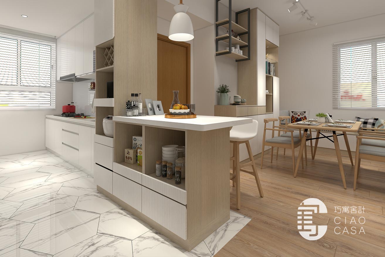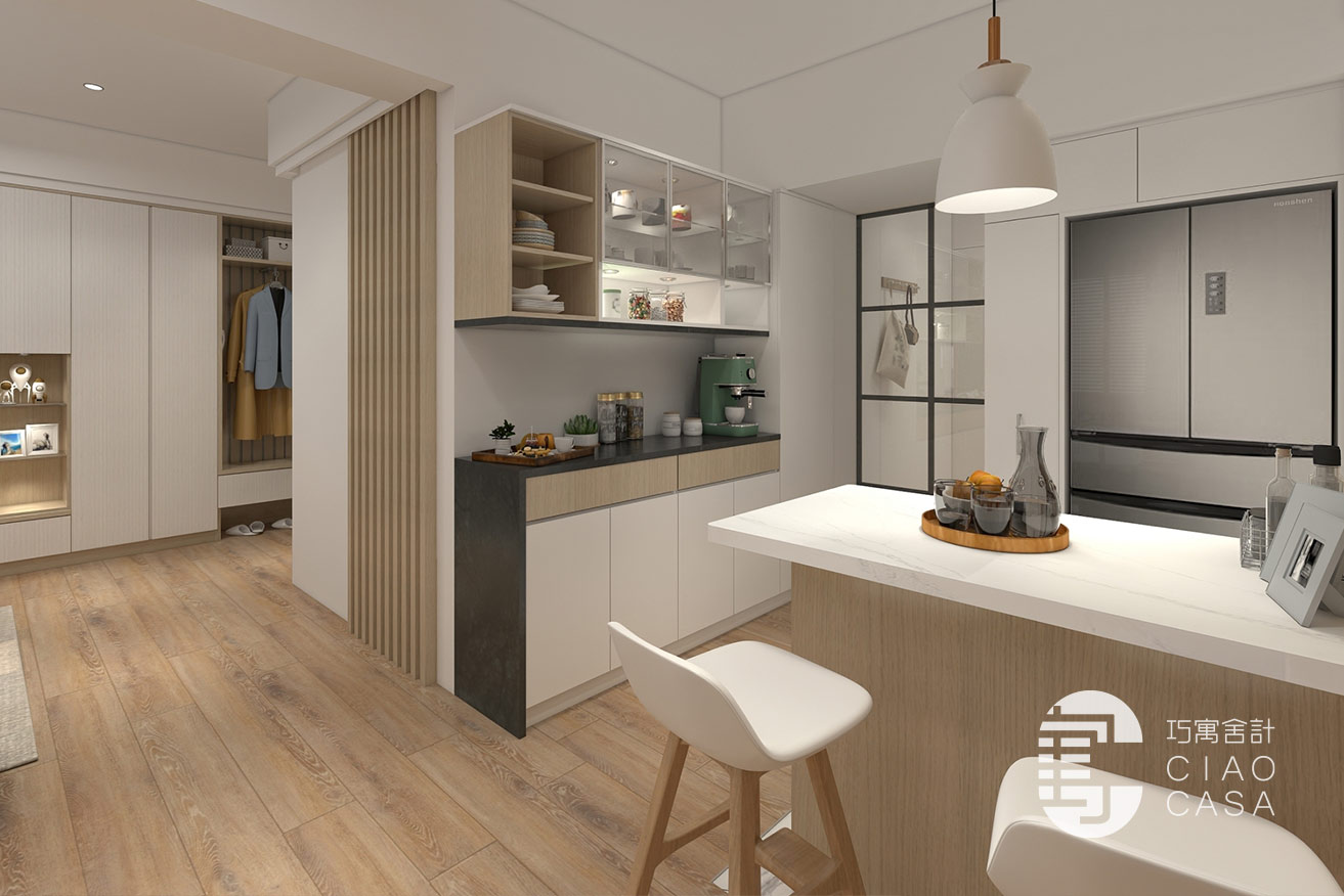 特殊塗料、系統櫃、木地板、鐵件、木作工程、木皮、人造石檯面、長虹玻璃、鋁框拉門、進口燈具