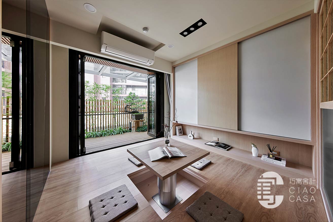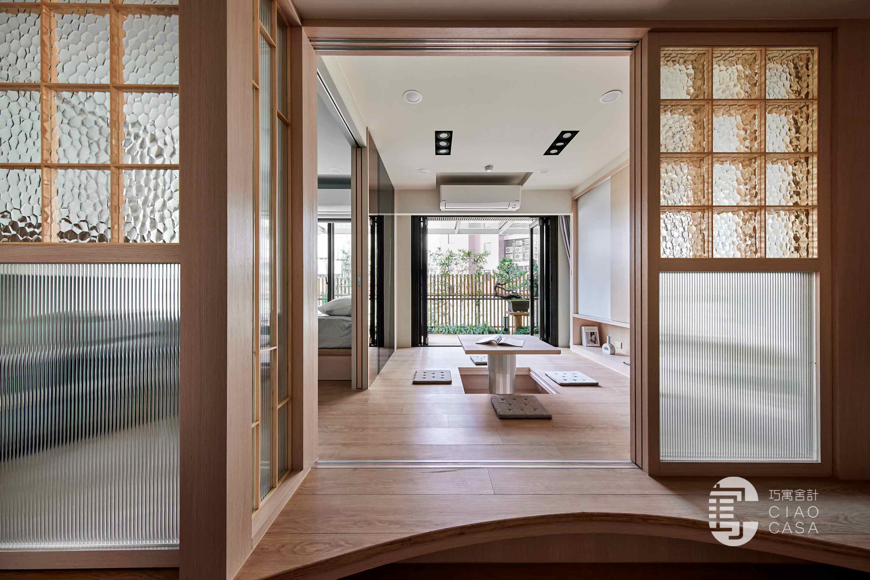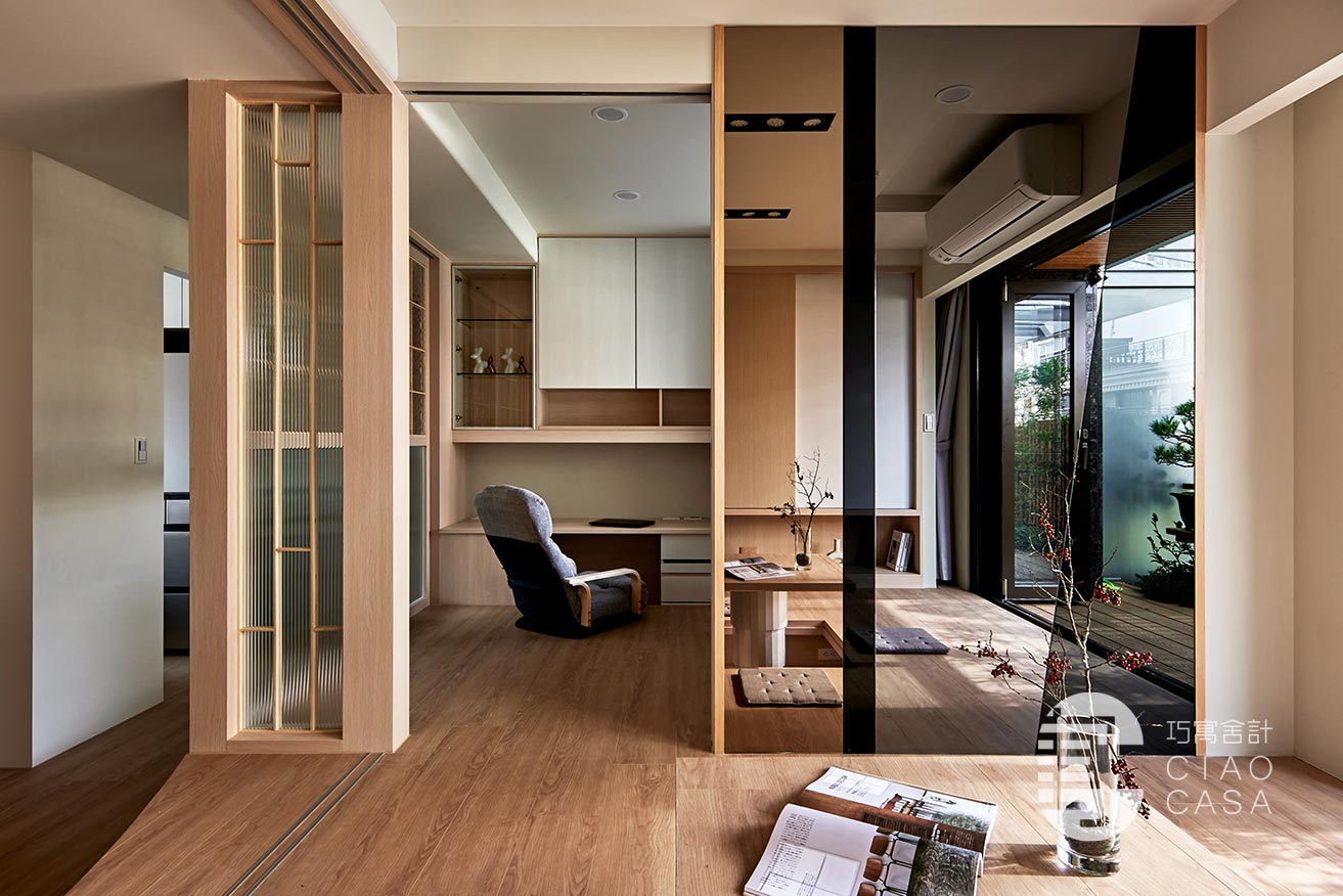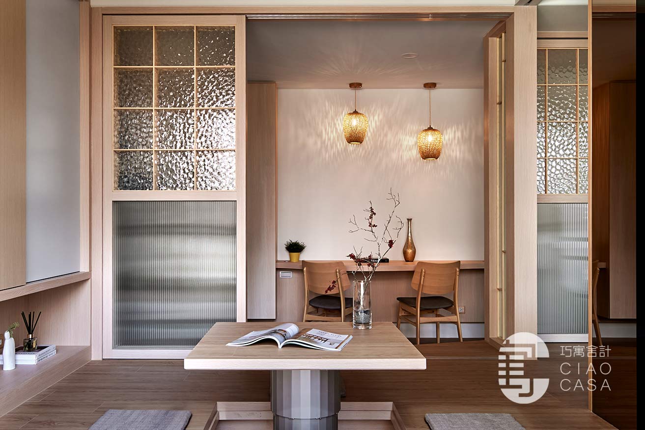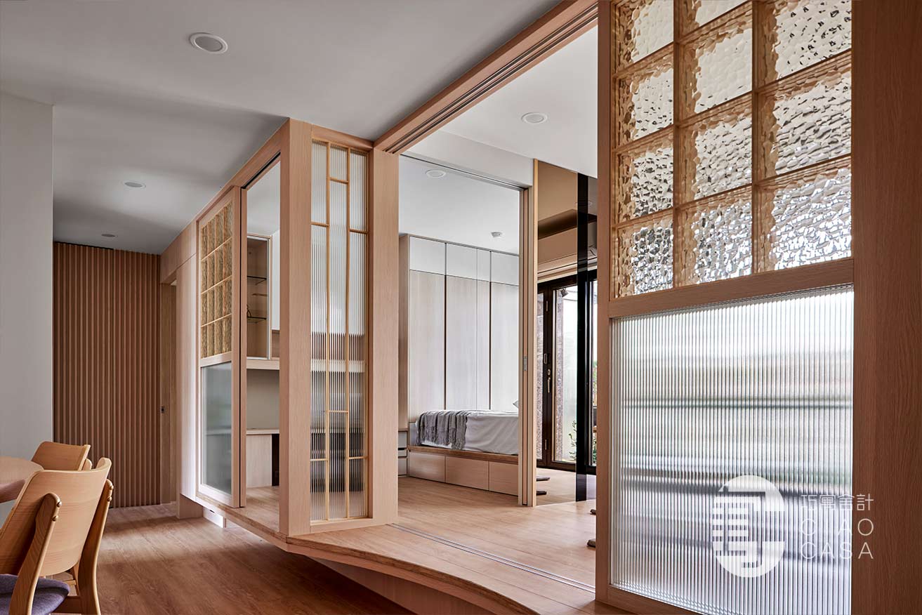 設計師以木質材料作為空間主軸,結合地台設計,以及打造正統日式庭園造景,共同形塑出濃厚的日式氛圍。並根據業主的家庭成員,重新規劃空間格局與動線,將空間巧妙串連,提供居者多重的場域用途,築構出美觀與實用兼具的機能美宅。