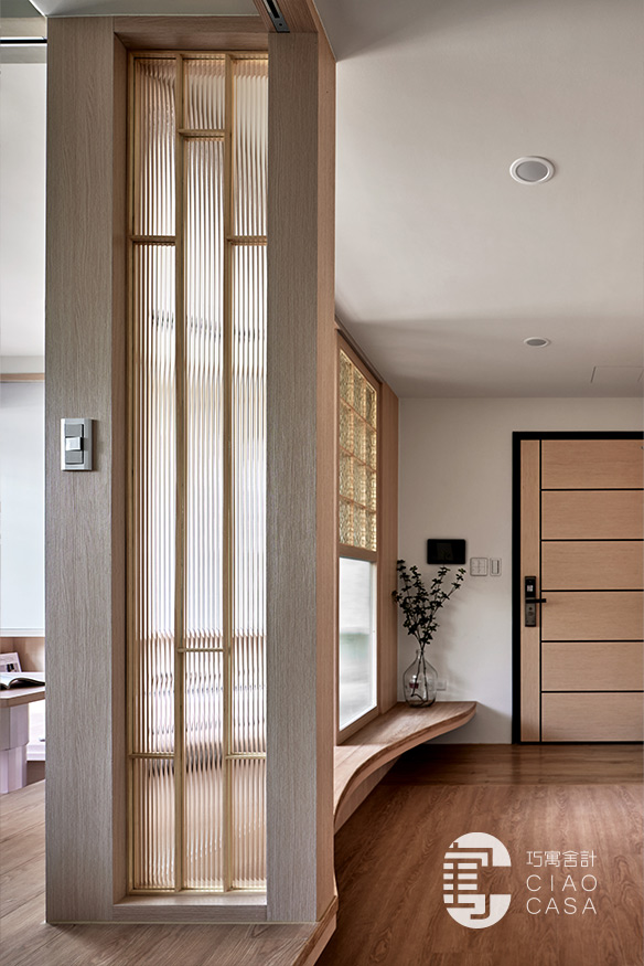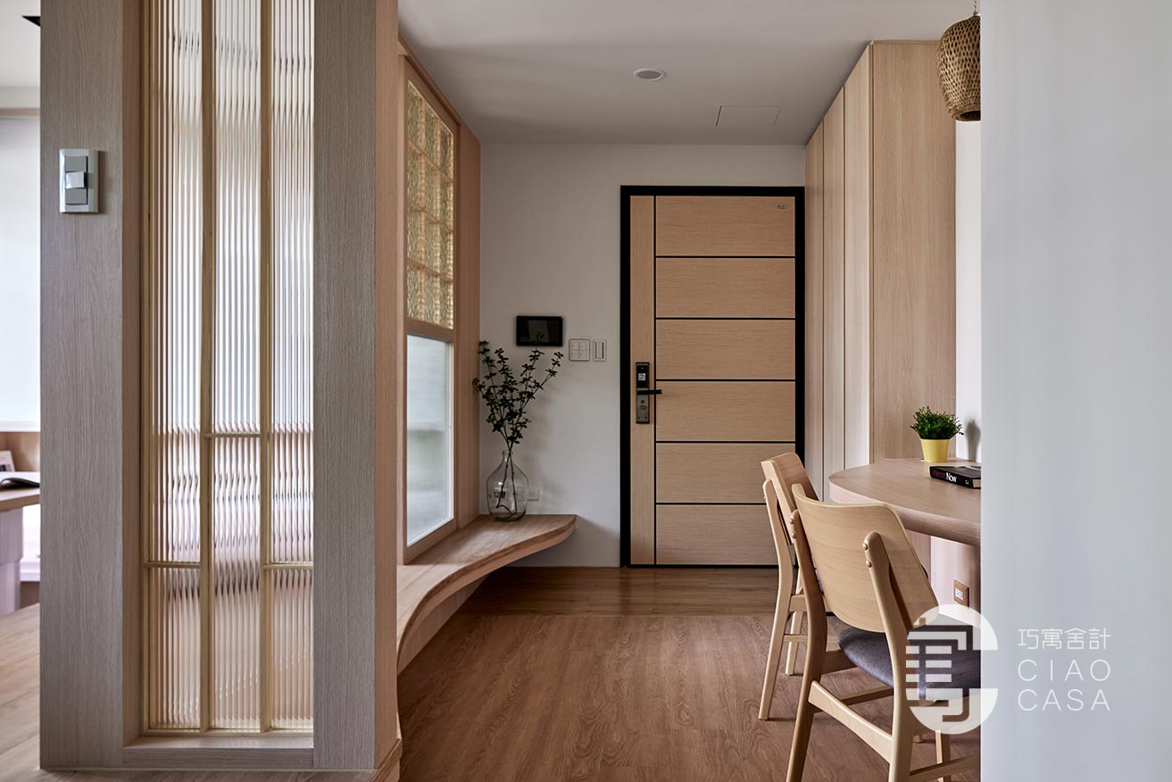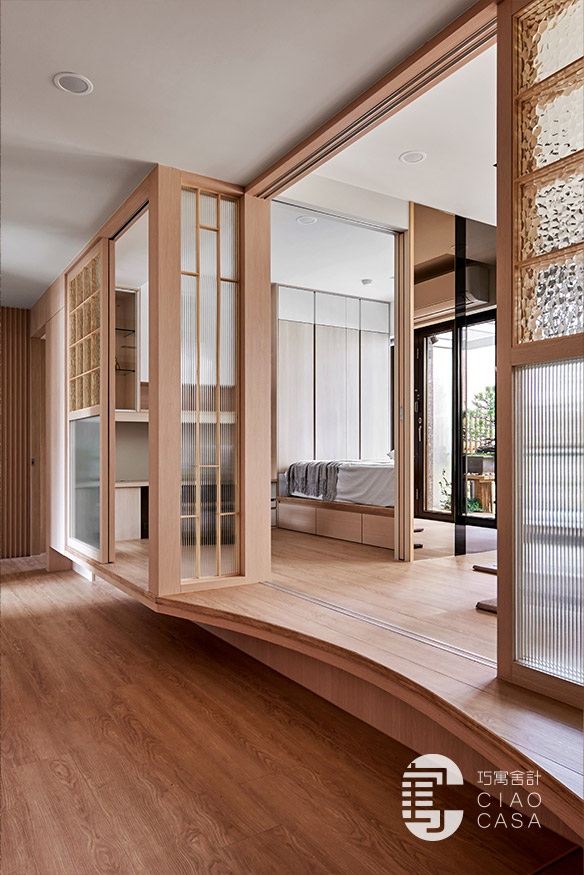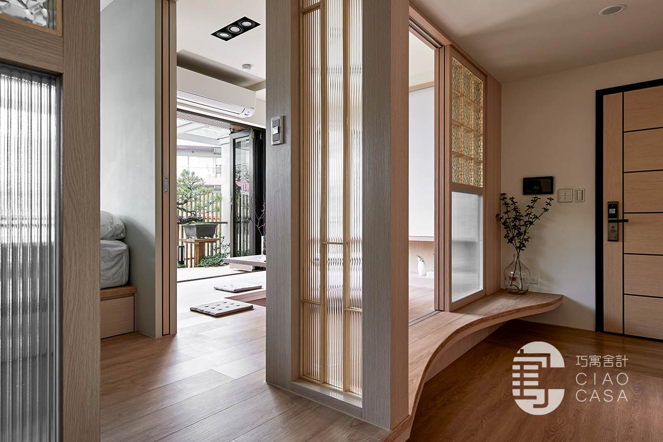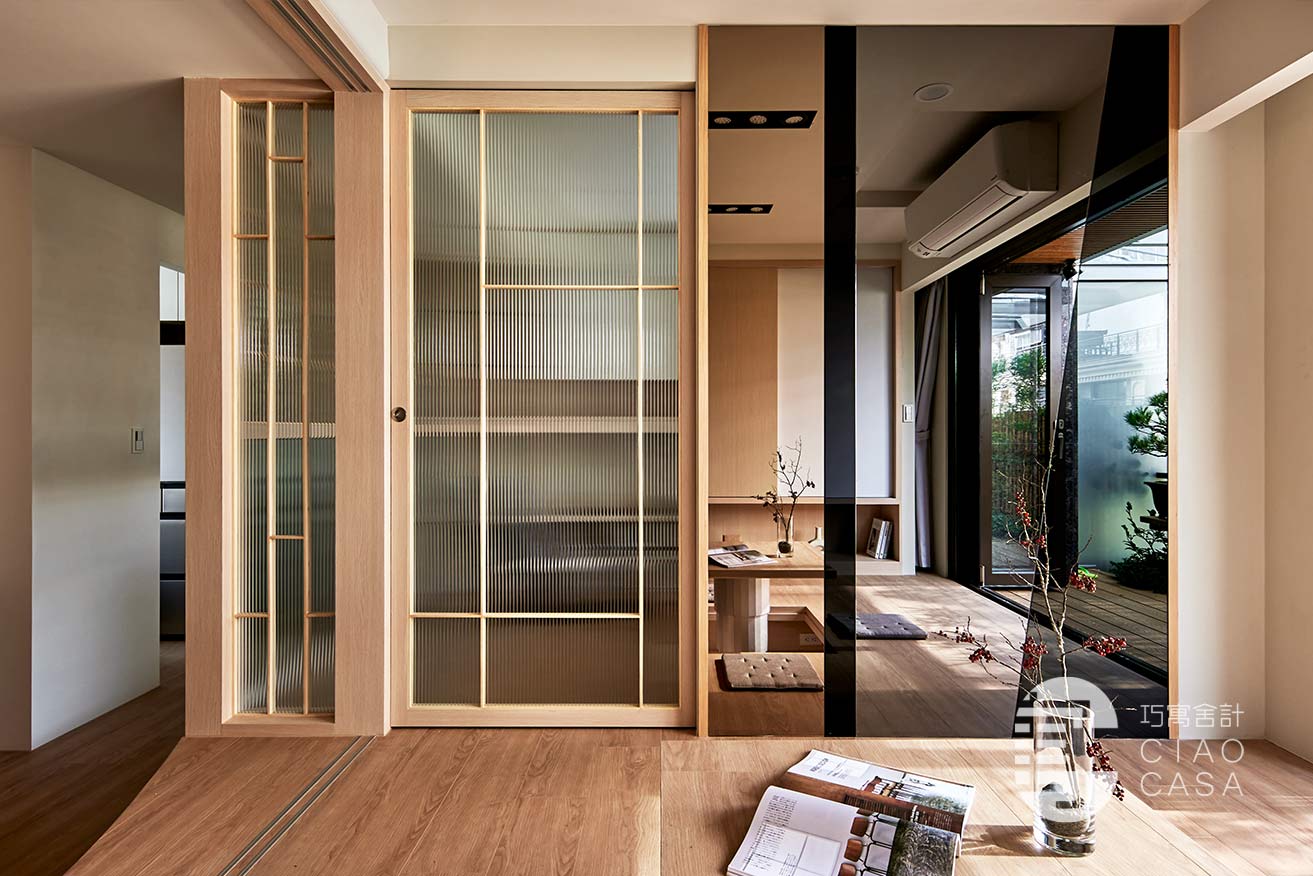 設計師以木質材料作為空間主軸,結合地台設計,以及打造正統日式庭園造景,共同形塑出濃厚的日式氛圍。並根據業主的家庭成員,重新規劃空間格局與動線,將空間巧妙串連,提供居者多重的場域用途,築構出美觀與實用兼具的機能美宅。