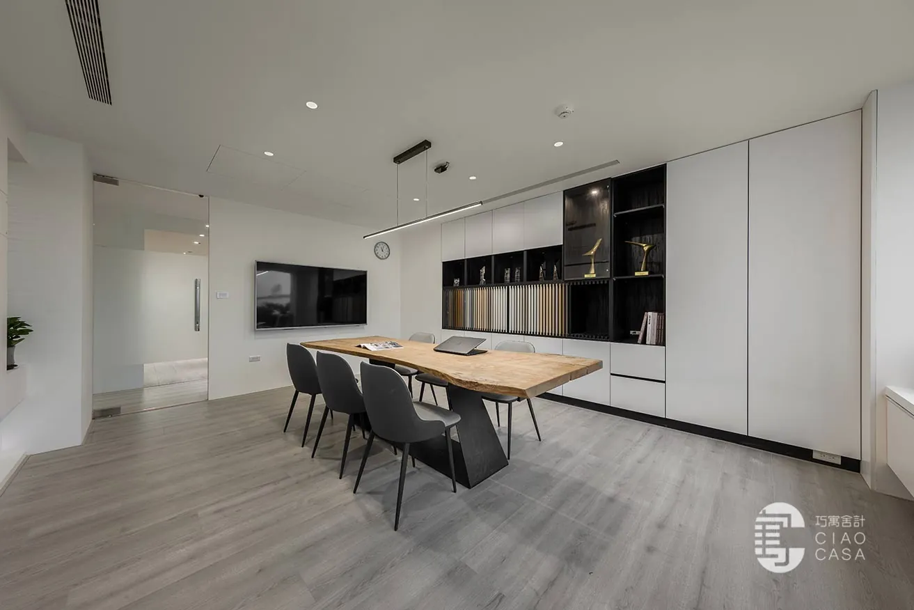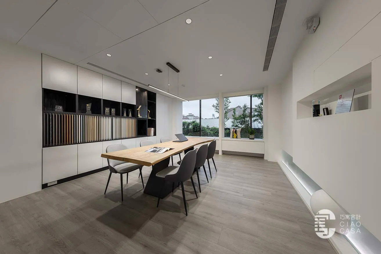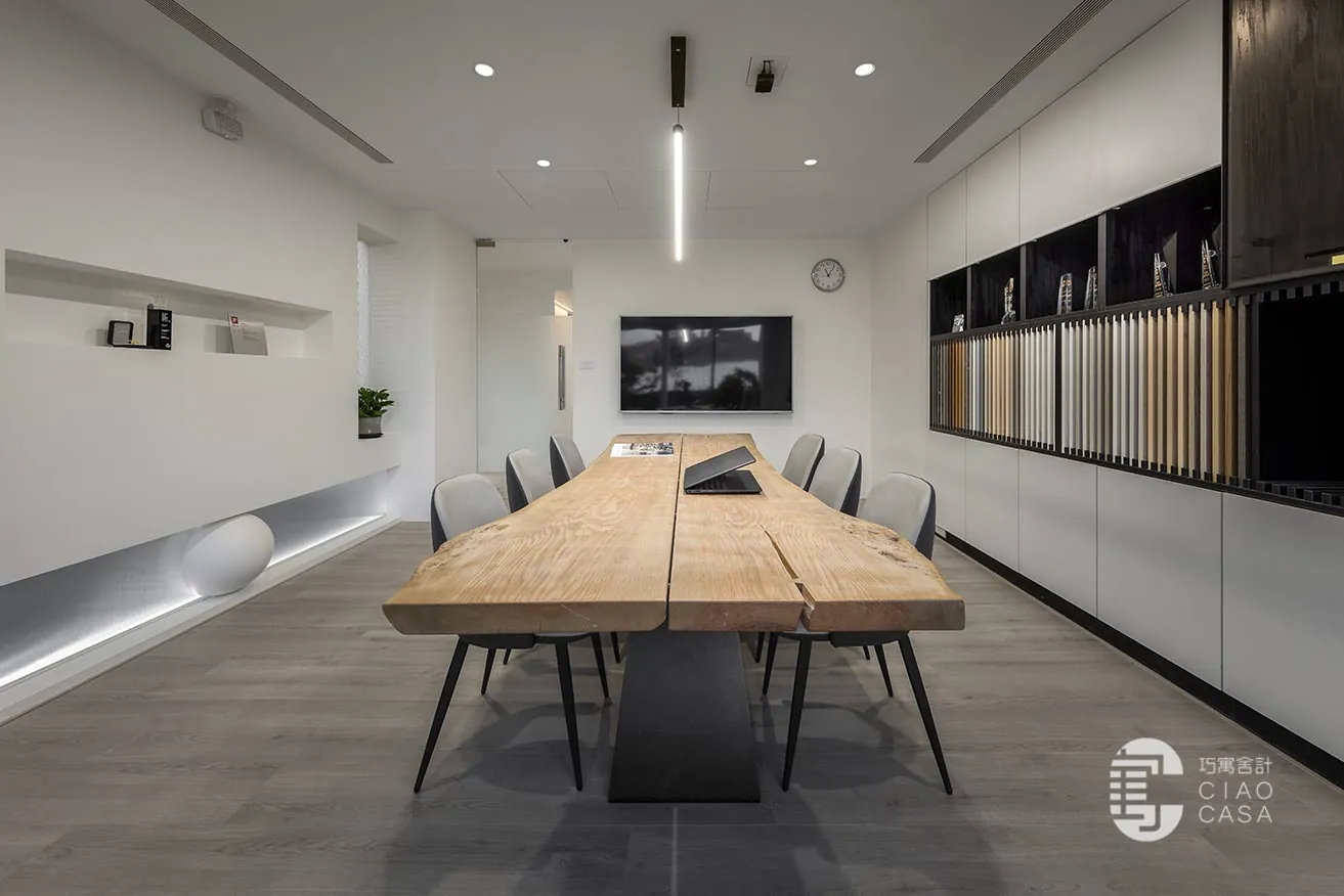 透過「光與影變化」設計,巧寓舍計總部表達了其對美學的追求,將實用性與藝術性完美融合於商業空間之中,使其成為一個具有質感又實用富有創意的工作環境。