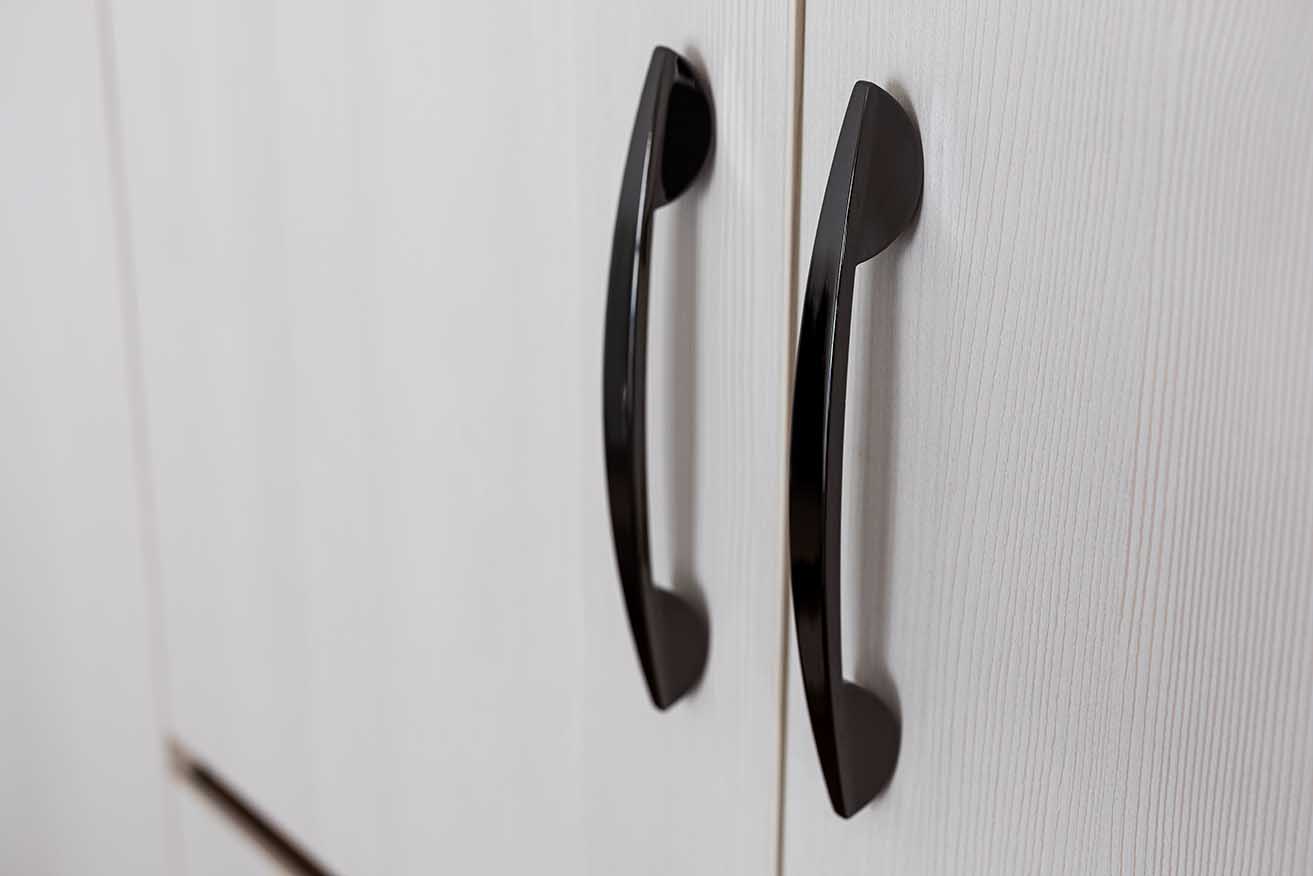 並選配琴鍵式開孔門板,使依序錯落的線條為門片增添律動變化,營造清爽迎賓意象,內部多以層架配置,完整一家三口外出鞋履收納。