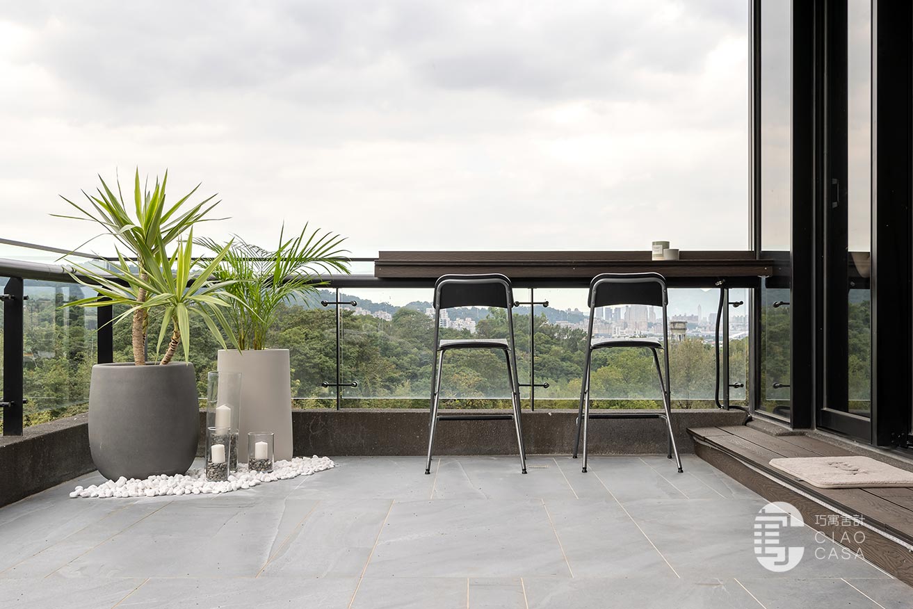 毛胚屋四面採光的絕佳格局,搭上鳥瞰台北101地標的觀景露臺,有著絕佳的地理位置,設計師以陽光走廊做為分界,將公私領域區分開來,以廚房與多功能室做為家的中心,大面積落地窗外的綠景,帶入屋中,建構處處是景的森林系休閒宅,每個角落都有它的故事,每一束光線都有它的溫度。在這裡,時間似乎變得緩慢,每一刻都值得細細品味。不僅是居住的場所,更是一種生活的藝術,一次心靈的遠行。