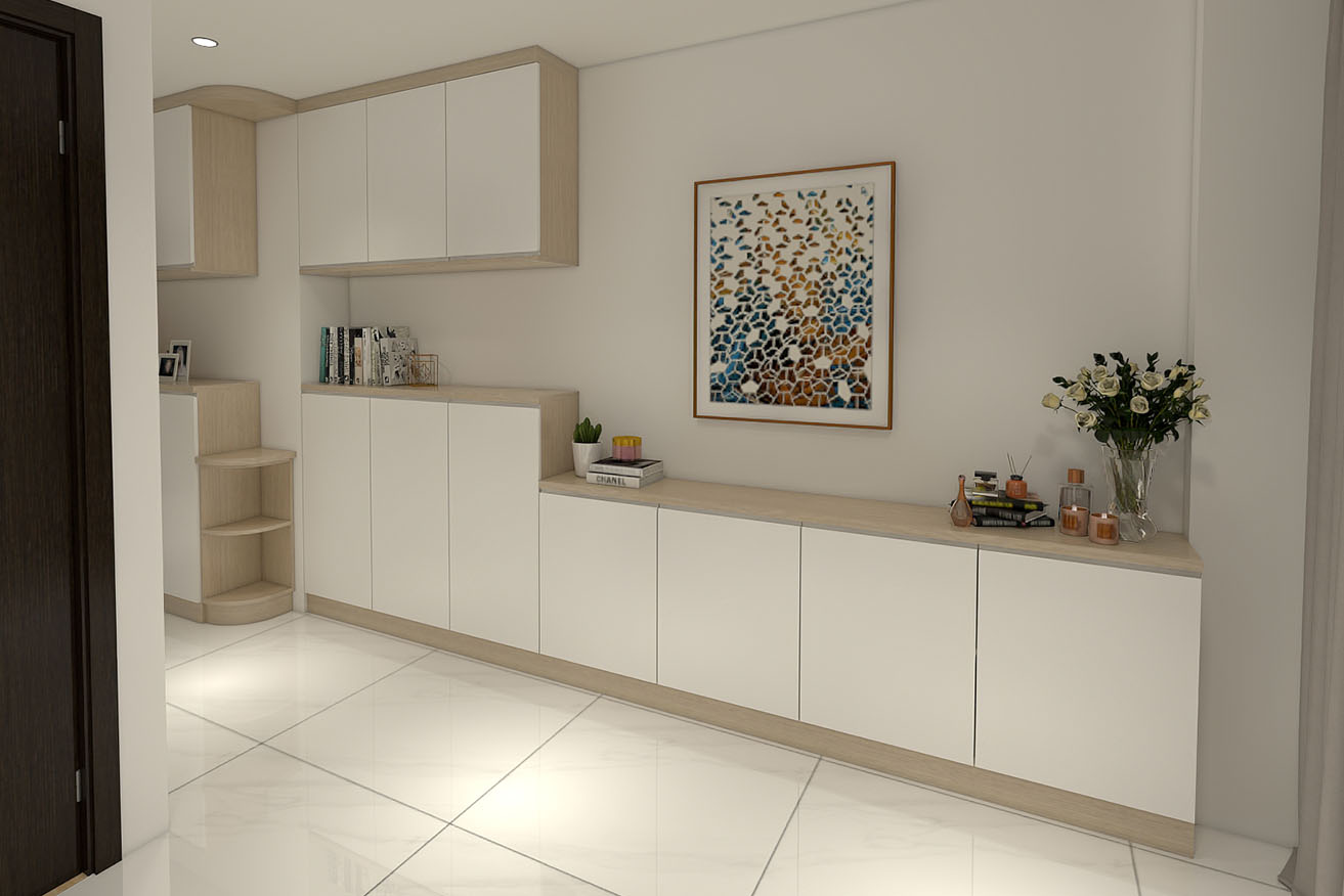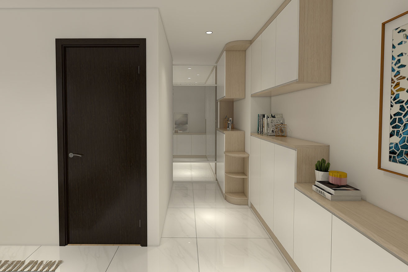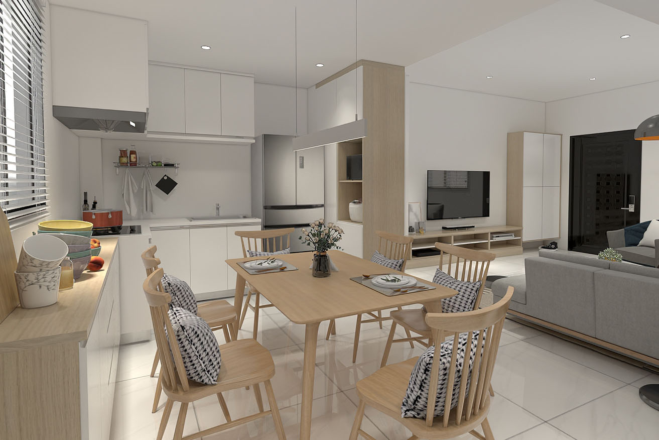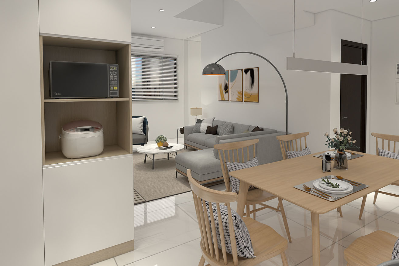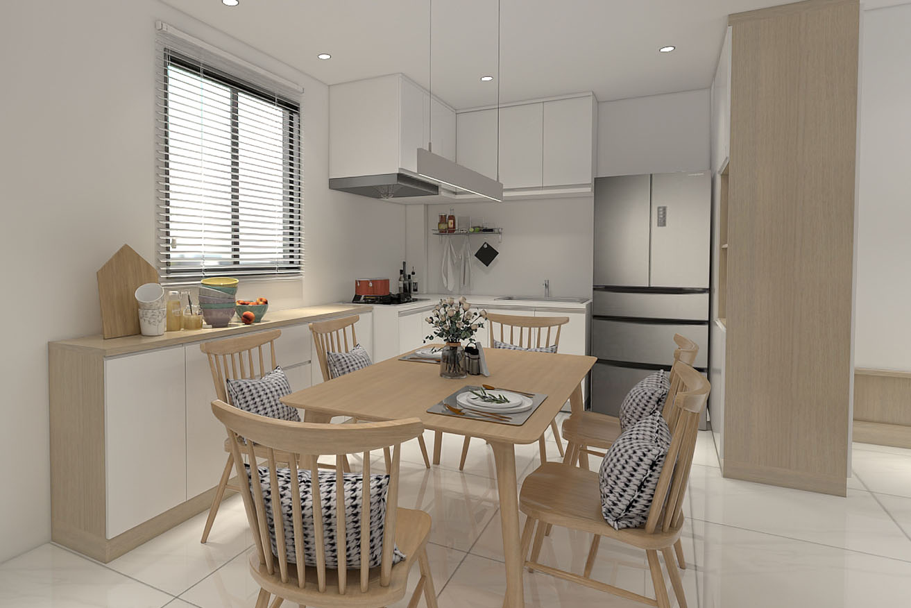 位於宜蘭市的透天新屋裝潢案例,屋主希望以白色元素、北歐風格為出發點,著重在收納機能上,楊育樺設計師透過收納櫃與電器櫃界定出客餐廳空間,以實木家具與地毯軟件營造溫潤感,二樓為臥室及更衣間功能,衣櫃結合了書桌空間的一體設計,將收納延伸。