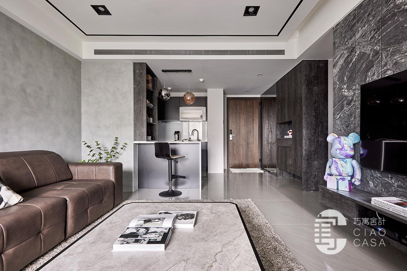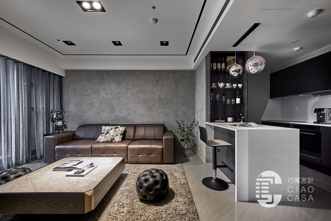 26坪新成屋,為兩戶合併一戶的型態,葉松芳設計師以灰階色調為原點,將現代雅奢的品味與時尚格調相融,透過簡練的線條描摹空間廓形,並以精緻的細節昇華整體格調,構織出現代小家庭理想的生活藍圖。