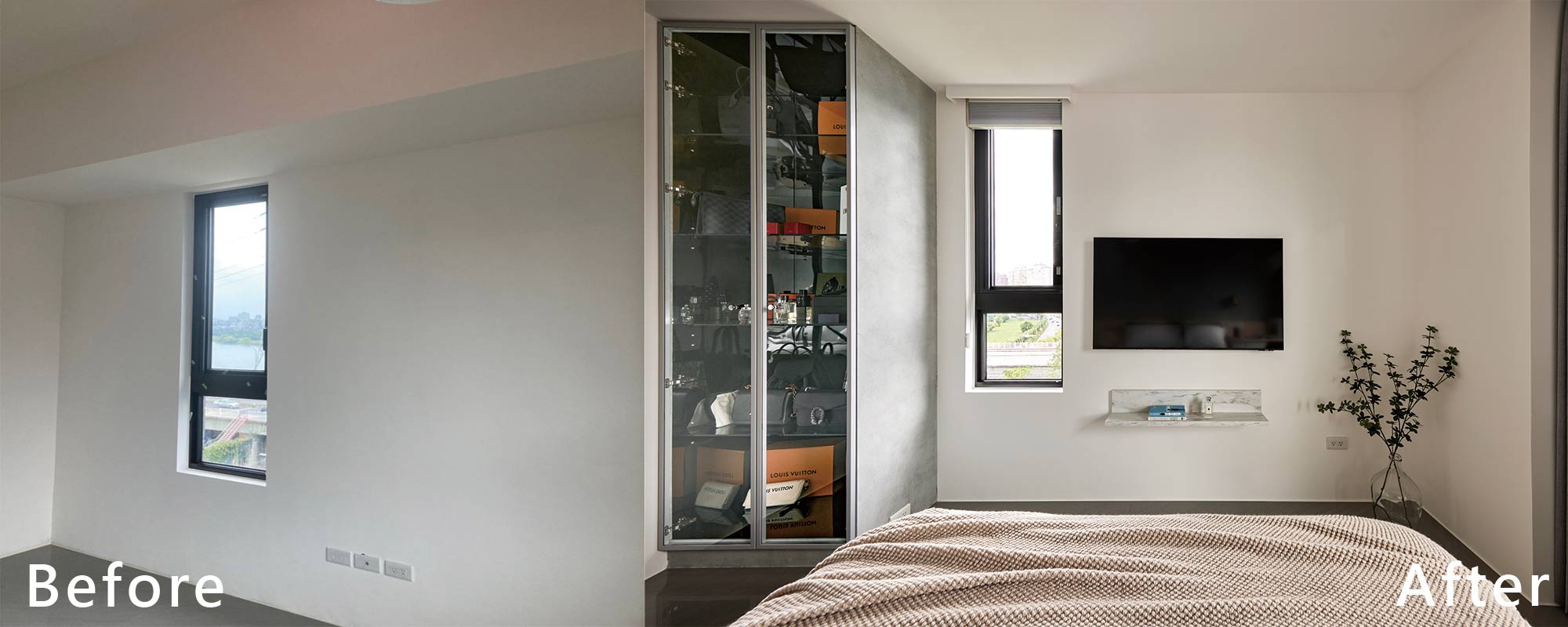屋主嚮往現代大氣的境域,又隱含沉穩內斂的氣質,且希望擁有一間獨立的更衣室。